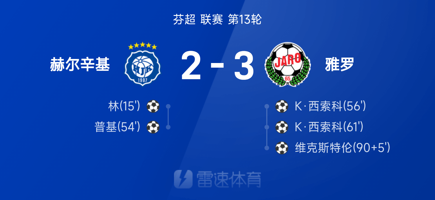 芬超战报:西索科双响,维克斯特伦绝杀,雅罗3-2赫尔辛基