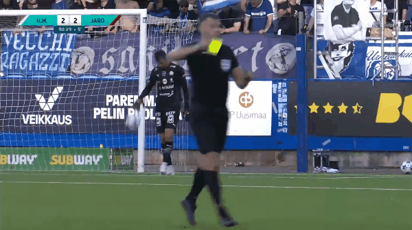 90+1’黄牌-Miika Nuutinen(赫尔辛基) 对判罚表达异议